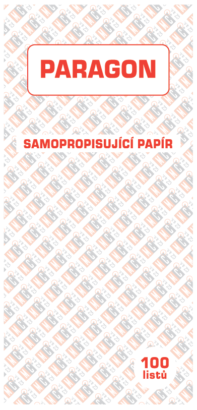 Paragon, nečíslovaný, 100 listů, samopropisovací papír, velikost 70 x 148 mm.