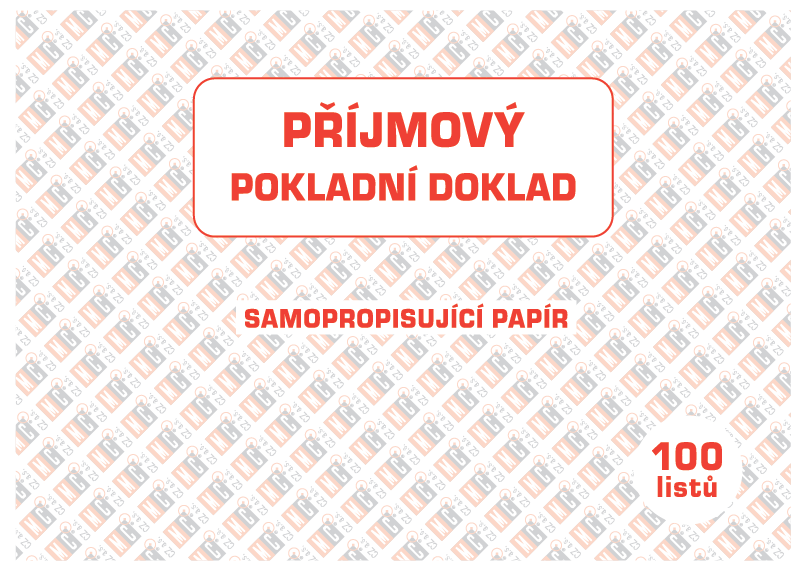 Příjmový pokladní doklad, 100 listů, samopropisovací papír, velikost A6 (105 x 148mm), nečíslovaný.