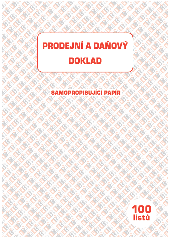 Prodejní daňový doklad, 100 listů, samopropisovací papír, velikost A5 (148 x 210 mm), nečíslovaný.