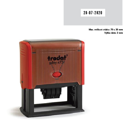 Plastové samobarvicí razítko Trodat Printy 4731 s datumkou, maximální rozměr otisku je 70x30 mm, výška data 3 mm