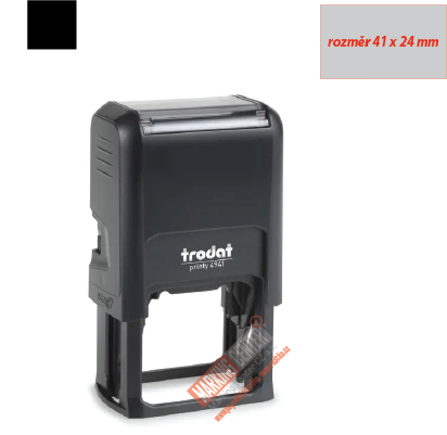 Plastové samobarvicí razítko Trodat Printy 4941, maximální rozměr otisku je 41x24 mm.