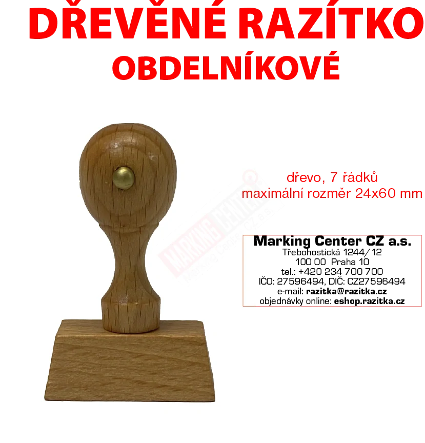 dřevěné razítko obdelníkové 7 řádkůskladem 20 ks281 Kč/ ks232,23 Kč bez DPH