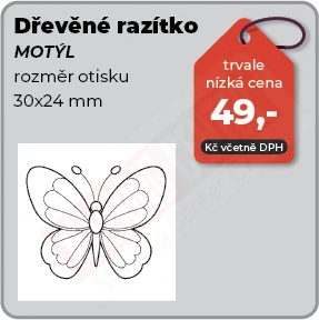 Dřevěné razítko Motýlskladem 2 ks49 Kč/ ks40,50 Kč bez DPH