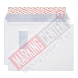 Kvalitní obálka C4 s oknem, rozměr 229 x 324 mm, vnitřní potisk zabraňující průhlednosti, odnímatelný pruh, gramáž: 120 g/m2. Chlopeň na delší straně obálky.