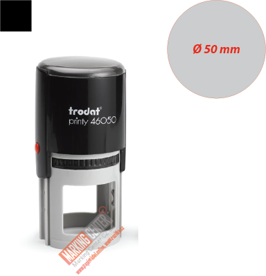 Plastové samobarvicí razítko Trodat Printy 46050 maximální rozměr otisku je kruh ∅ 50 mm.