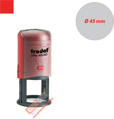 Razítko Trodat Printy 4645* Plastové samobarvicí razítko Trodat Printy 4645, maximální rozměr otisku je kruh ∅ 45 mm. barva strojku: červená barva otisku: černá, modrá, červená, zelená, fialová náhradní polštářek: 6/4645 Jak objednat razítko ? Po výběru barvy strojku a otisku pokračujte vložením d... celý popis