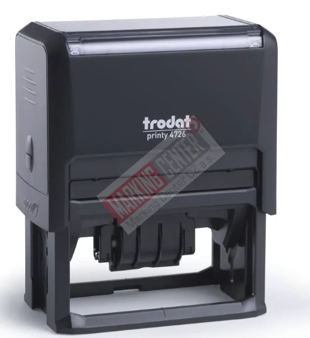 Plastové samobarvicí razítko Trodat Printy 4726 s datumkou, maximální rozměr otisku je 75x38 mm, výška data 4 mm
