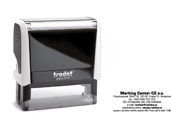 Samobarvicí razítko Trodat 4915, doporučený počet 7 řádků textu, aby byla zaručená dobrá čitelnost textu.