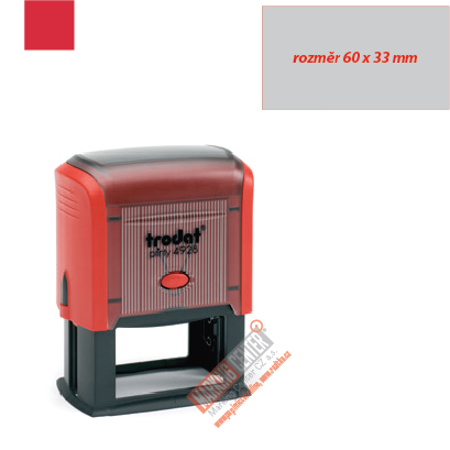 Plastové samobarvicí razítko Trodat Printy 4928, maximální rozměr otisku je 60x33 mm.